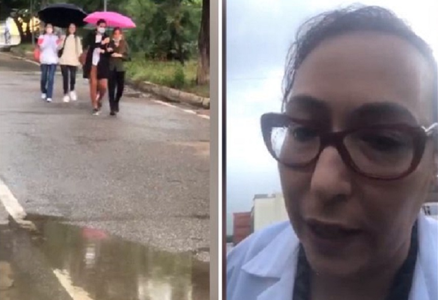 Shiheni është kohë me shi, po flas se sot shiheni bosh komplet sipërfaqja. Atje do të jap mësim unë sot tek studentët, kjo është sipërfaqja bosh këtu Kjo sipërfaqe nuk lejohet që të përdoret nga mjekët që sot do të japin këtu shërbim.